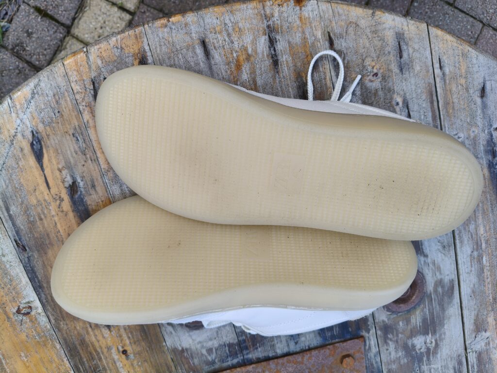 Models are divided into men’s and women’s, with women having various options in mesh and suede. I tried the men’s leather option, as this was the only one in stock in my size (UK 9). The marketing for this model had more specifically barefoot wording. Some models mentioned “minimal height difference between heel and toe”, rather than outright saying zero drop, which knocked my confidence in them. The white leather is appealing going into spring/summer, too.